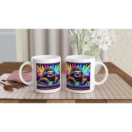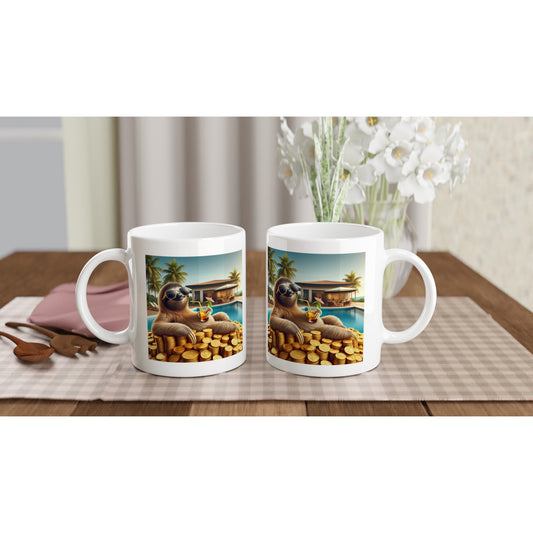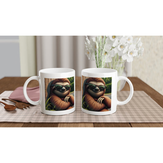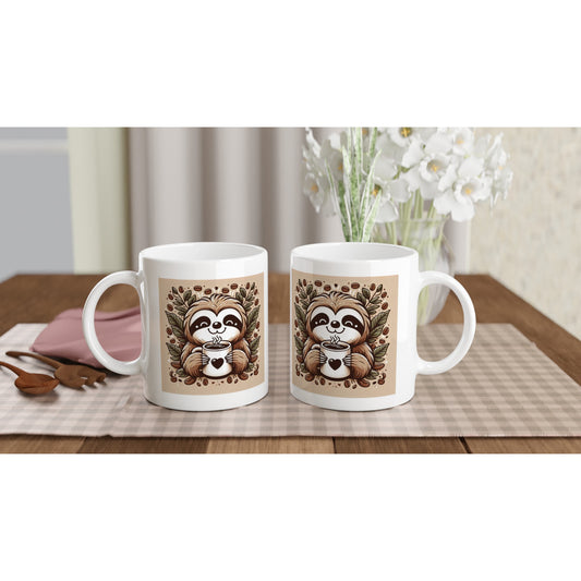 White Ceramic Mug - Sloth Living His Dream Life