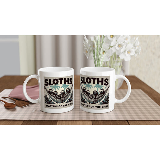 White Ceramic Mug - „Slothing Around Feeling Just Fine“