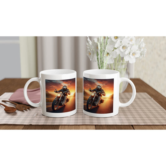 White Ceramic Mug - Driving A Bike